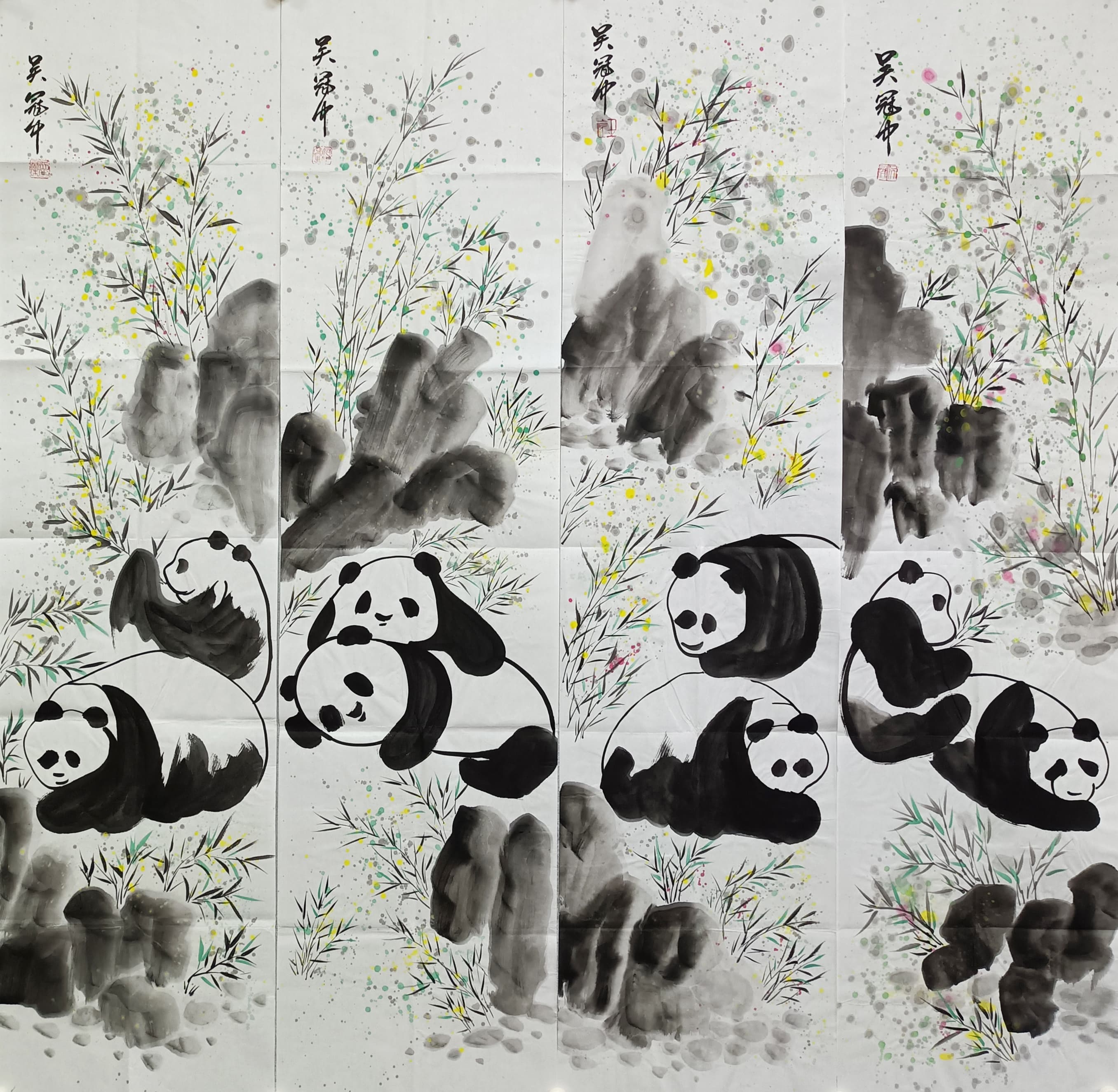 熊猫四条屏