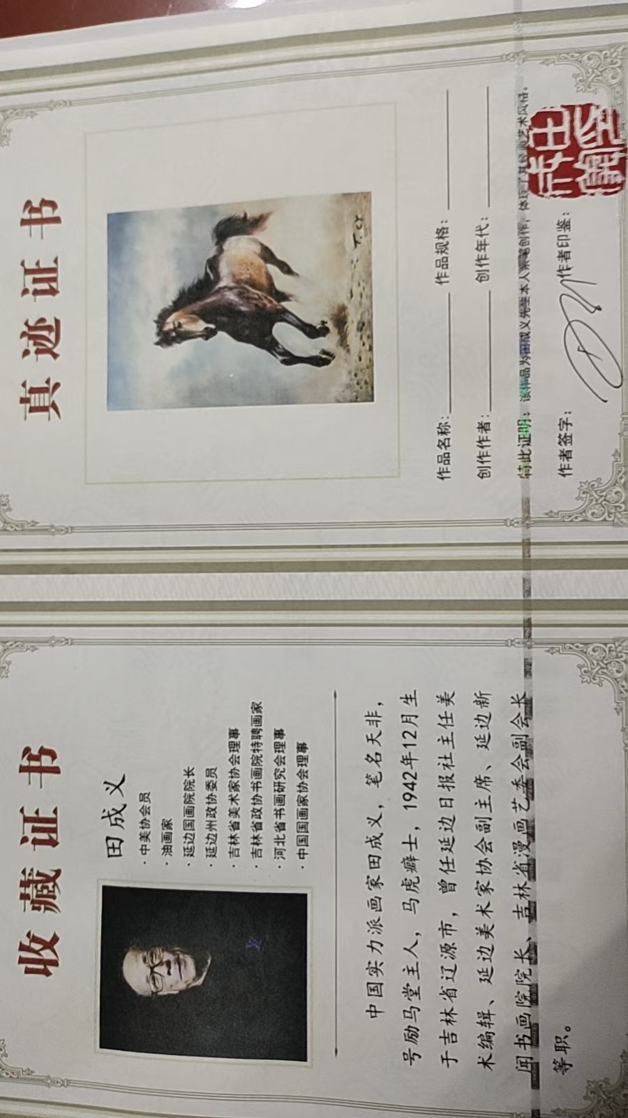 《油画马》田成义(款)
