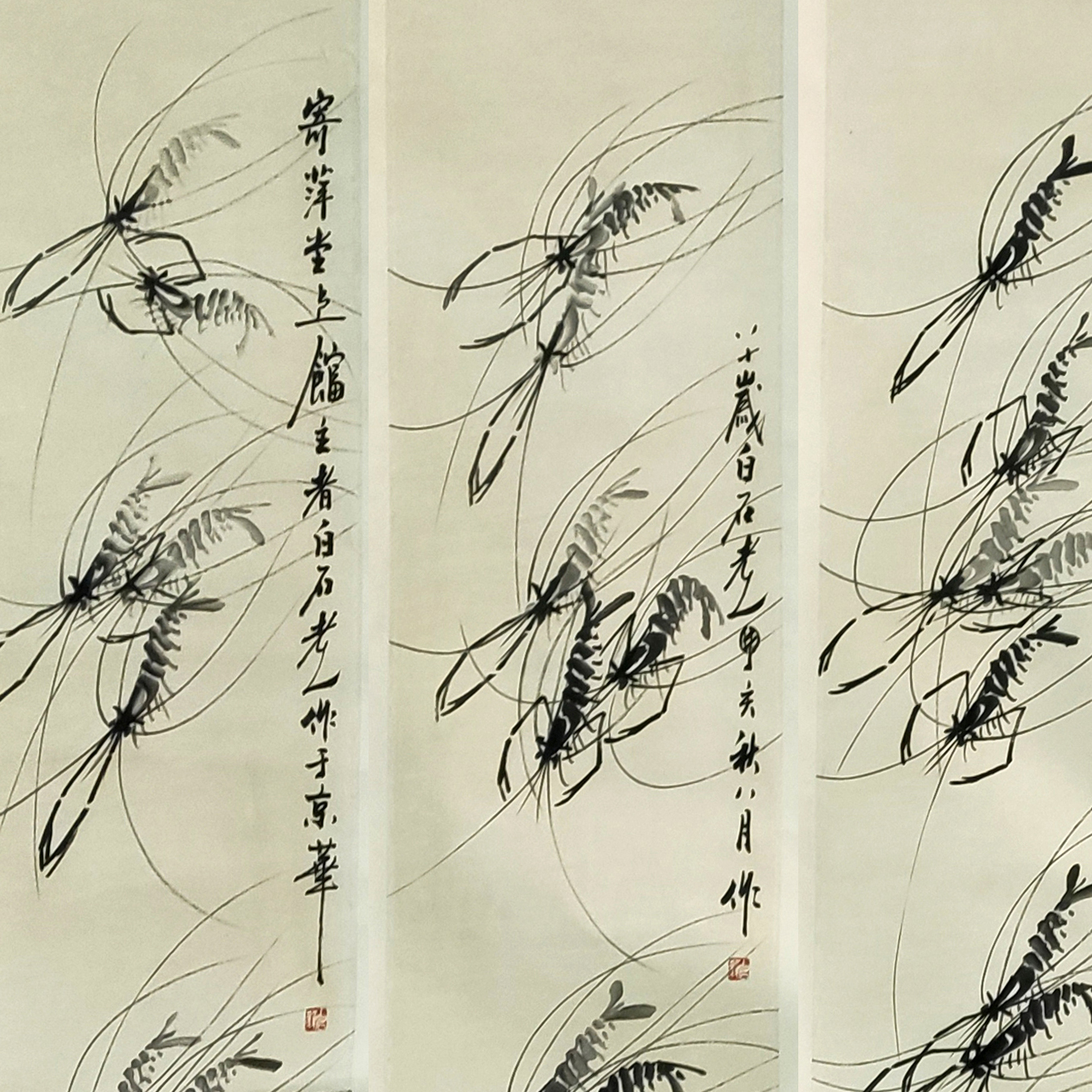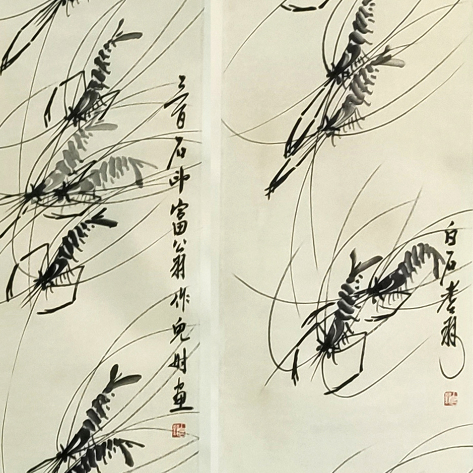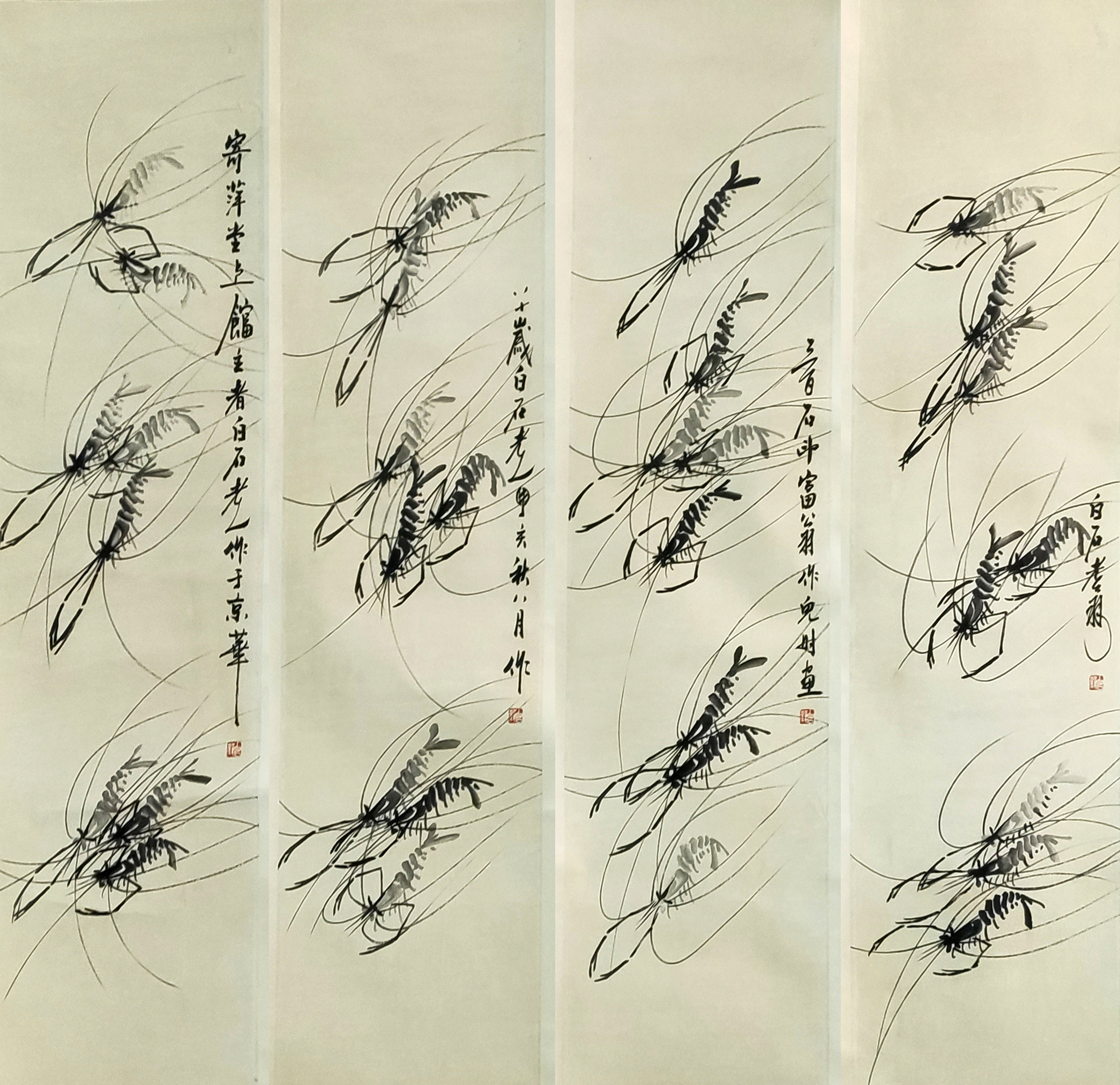 国画:虾四条屏