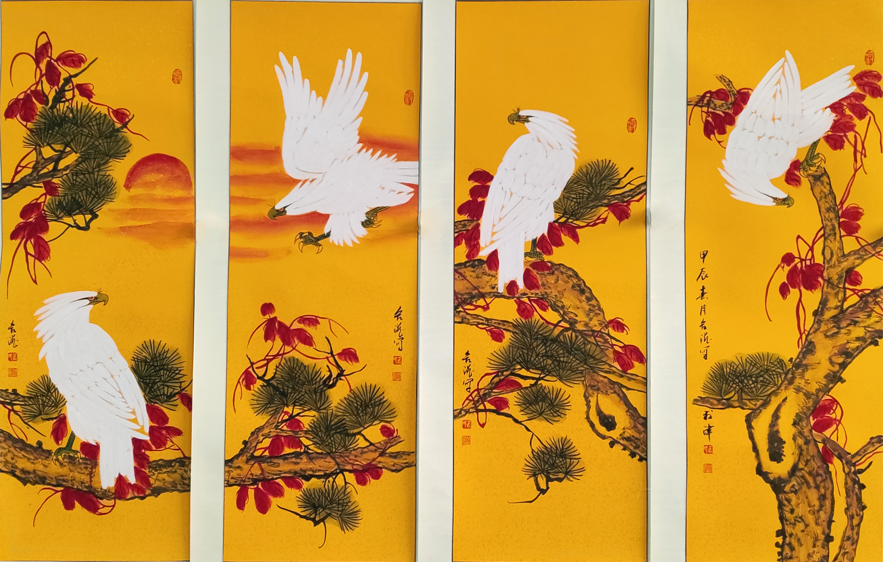 国画:丛合滋四条屏