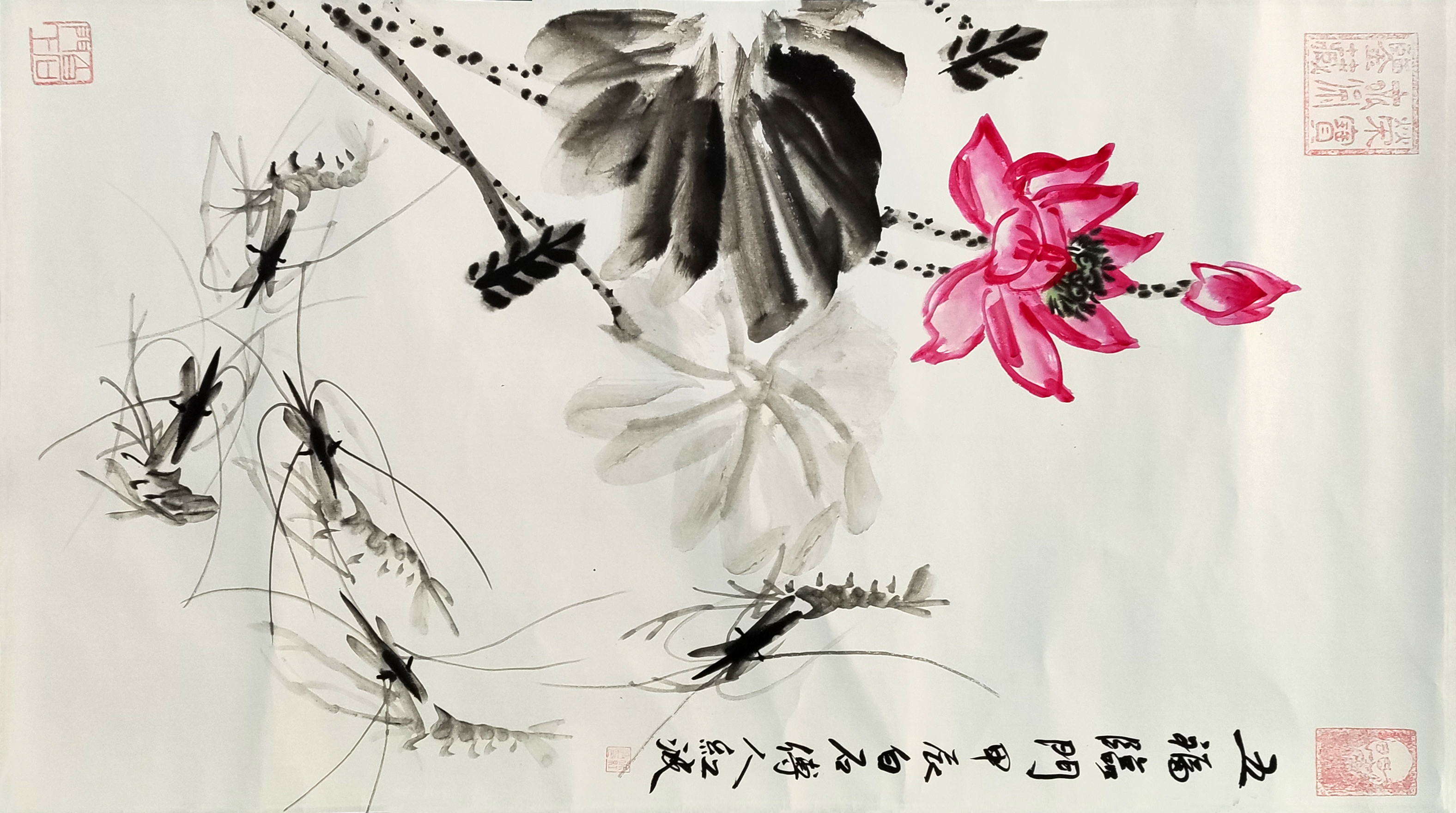 国画:五福临门