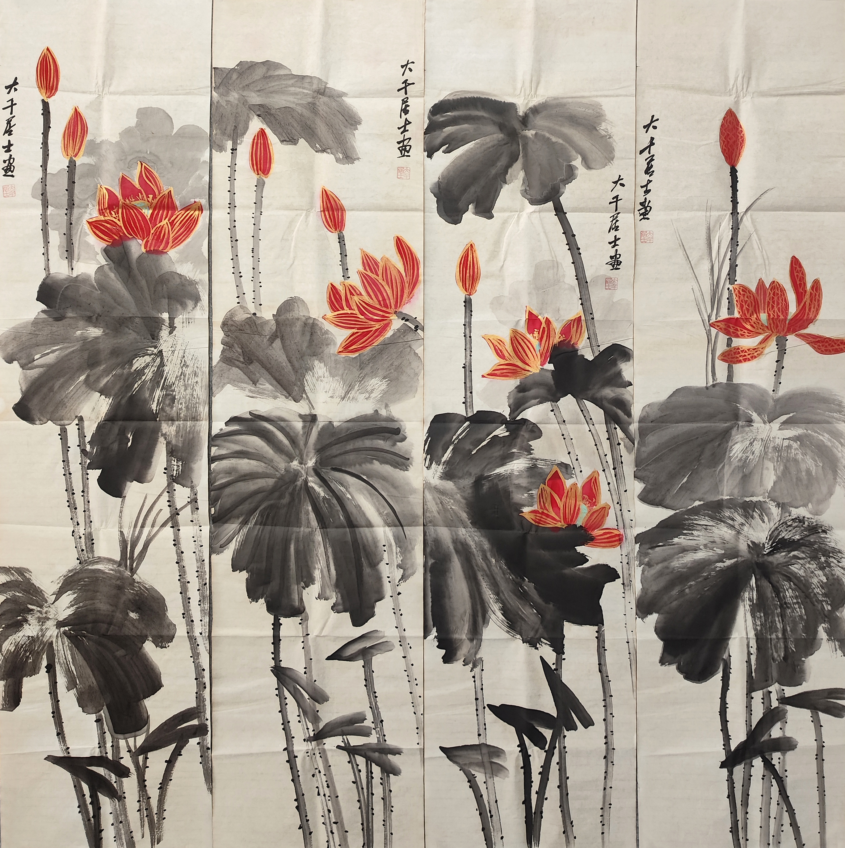 作品:四条屏(荷花)