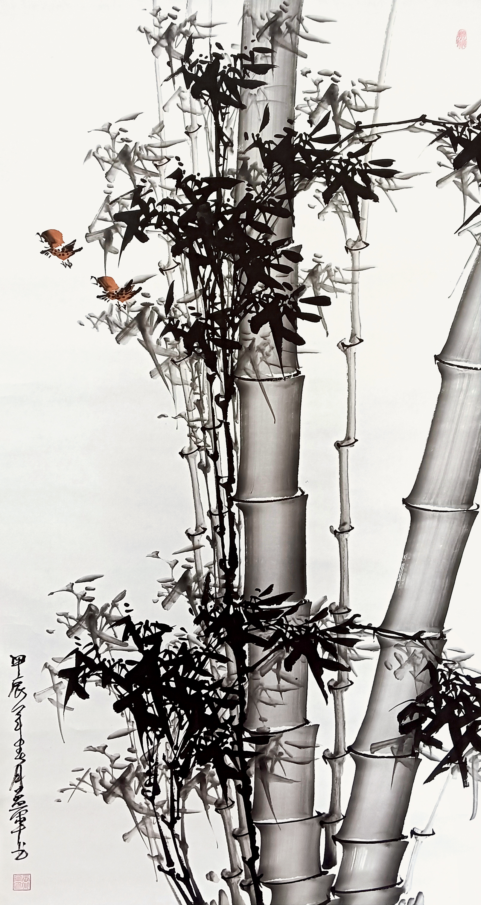 国画:竹雀