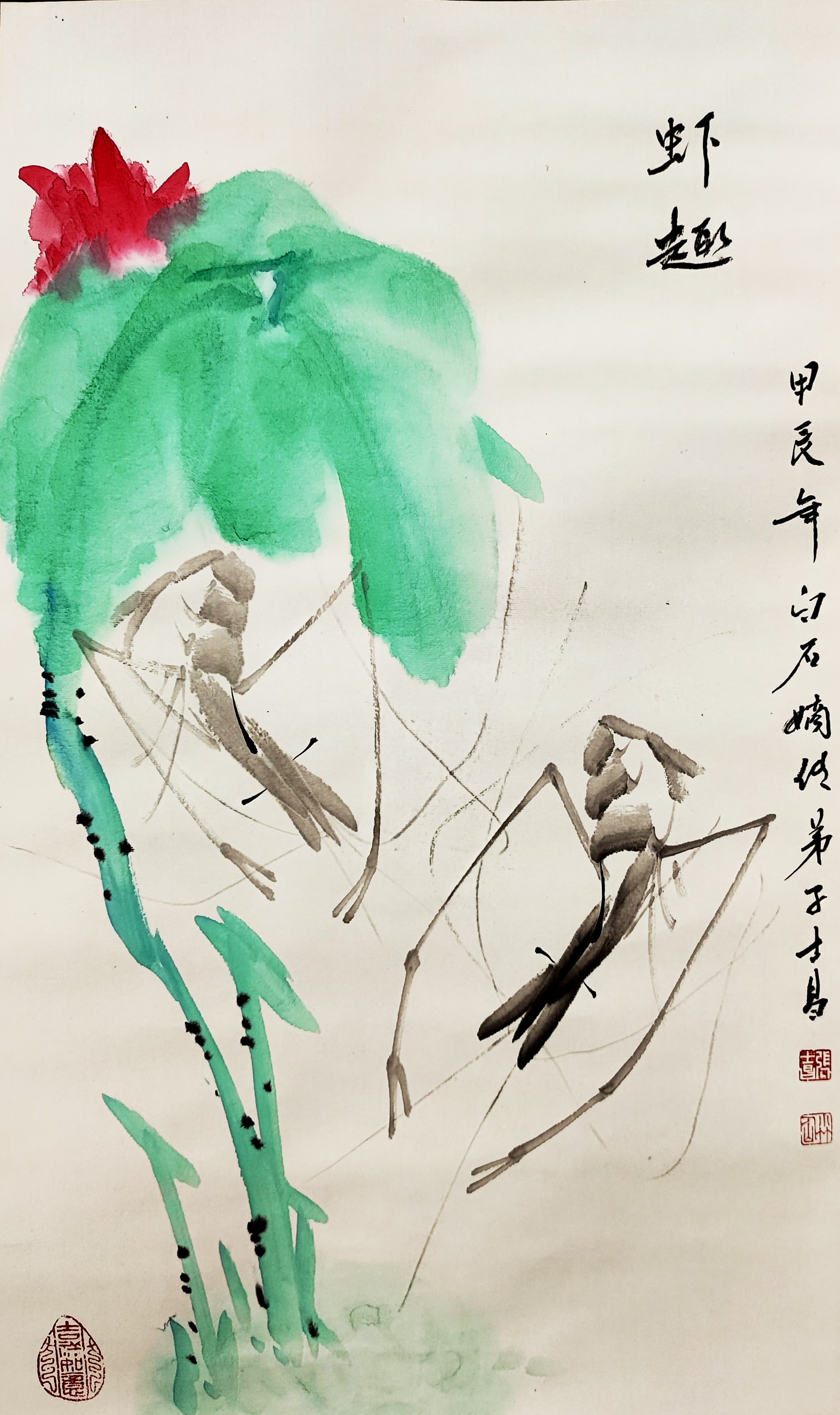 国画:虾趣