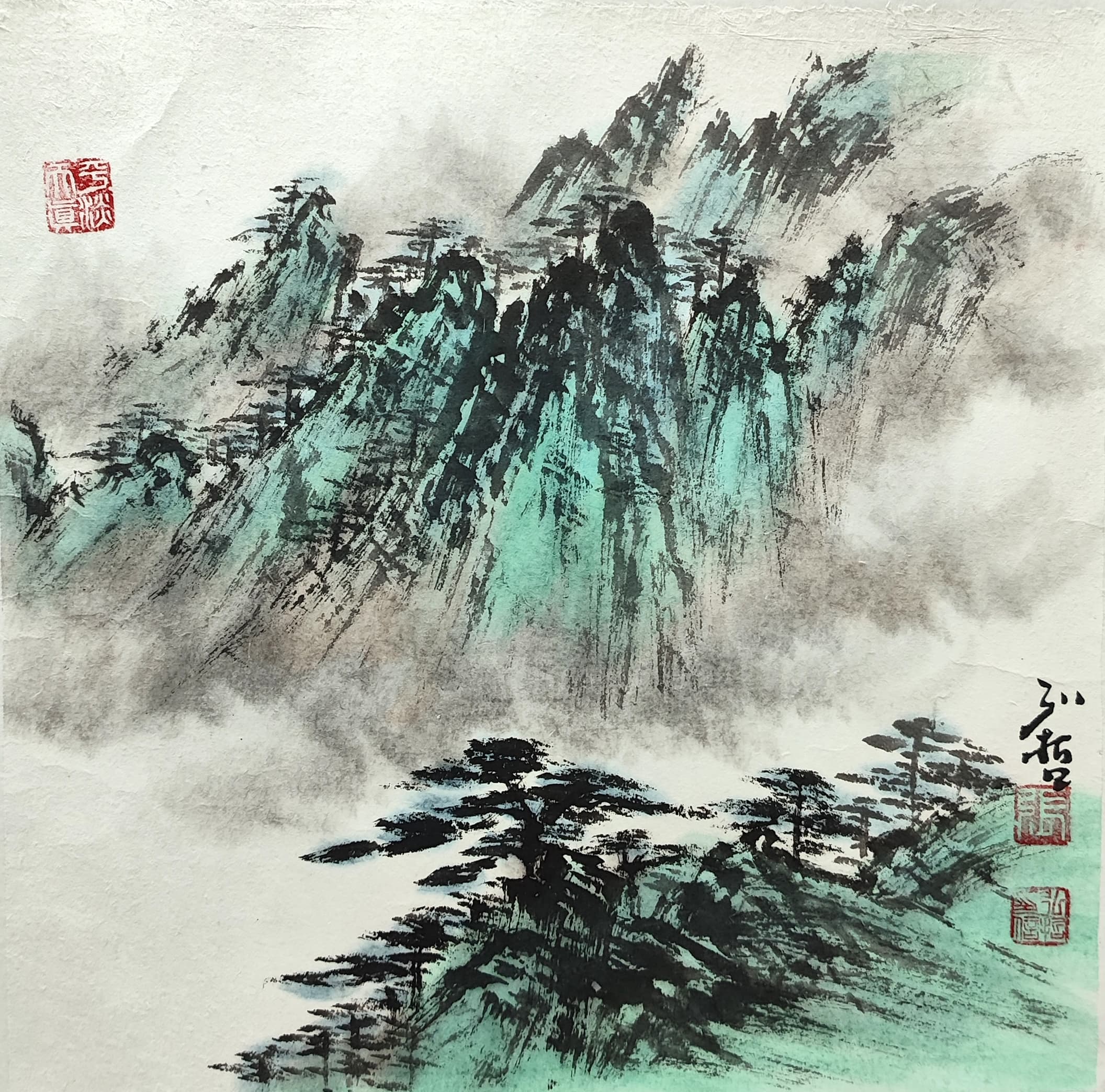 国画:山景