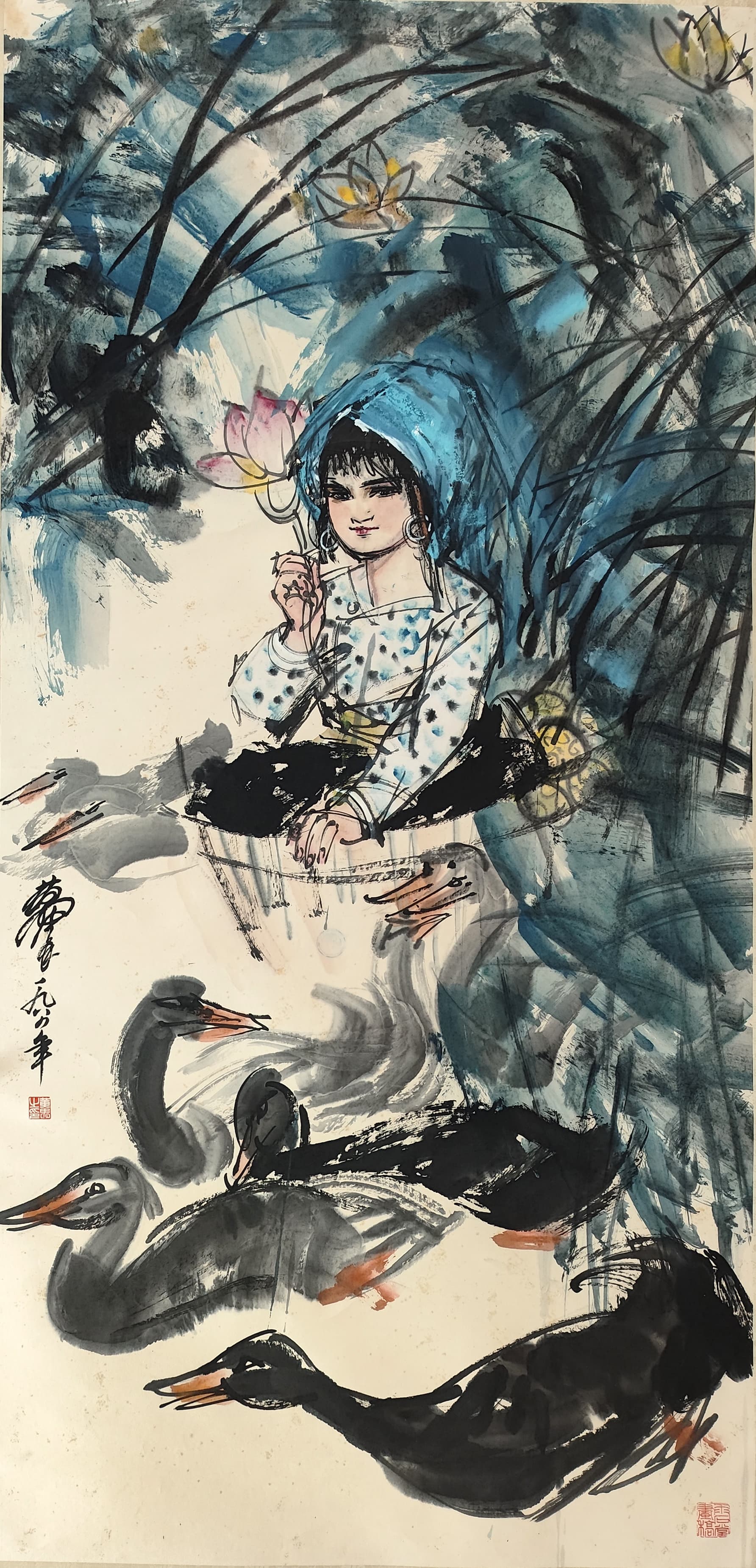 国画:采莲图