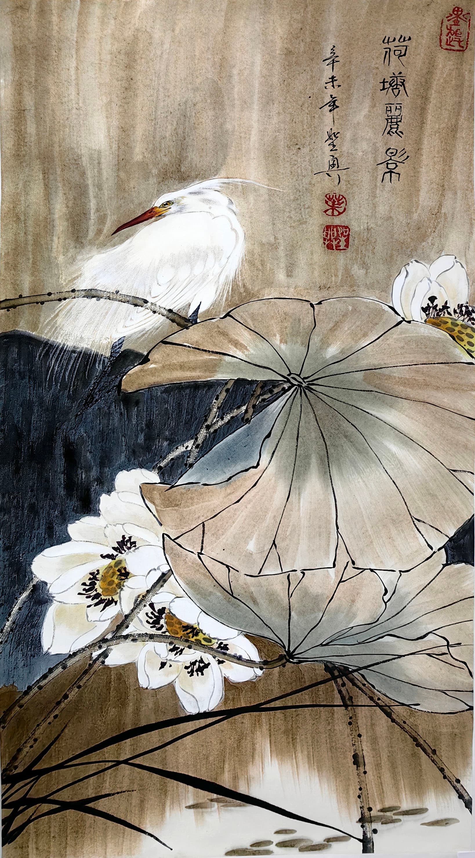国画:荷塘丽影