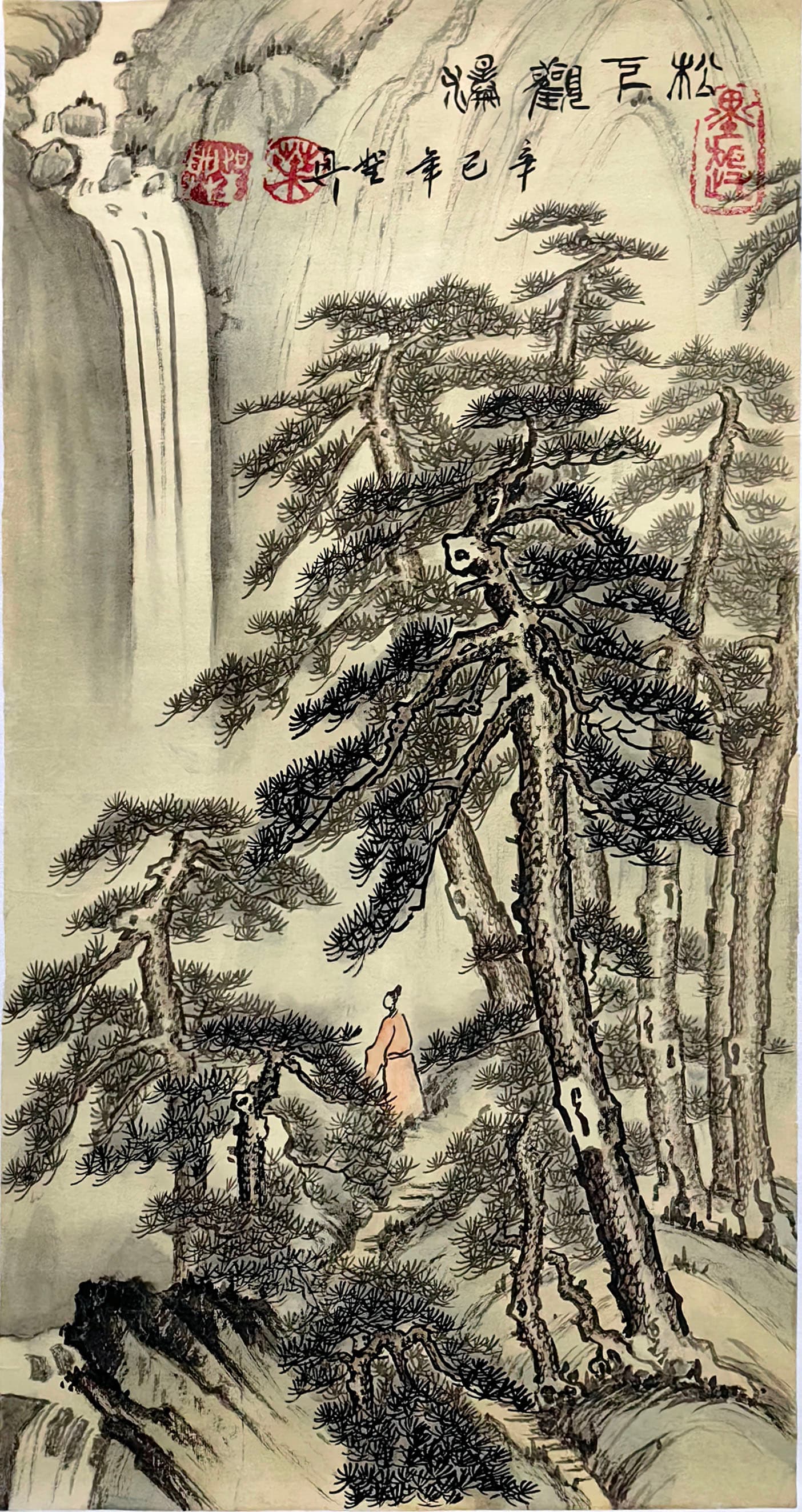 国画:松下观瀑