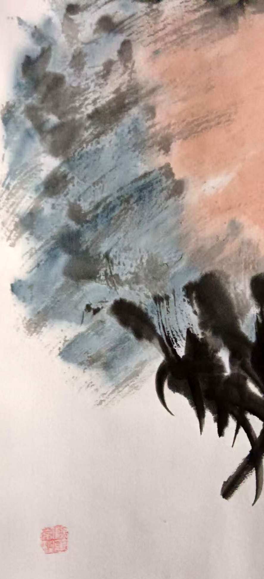 -雄鸡所站立的石头,象征着稳固与坚定,寓意家庭或事业根基牢固、坚如磐石。整体意境