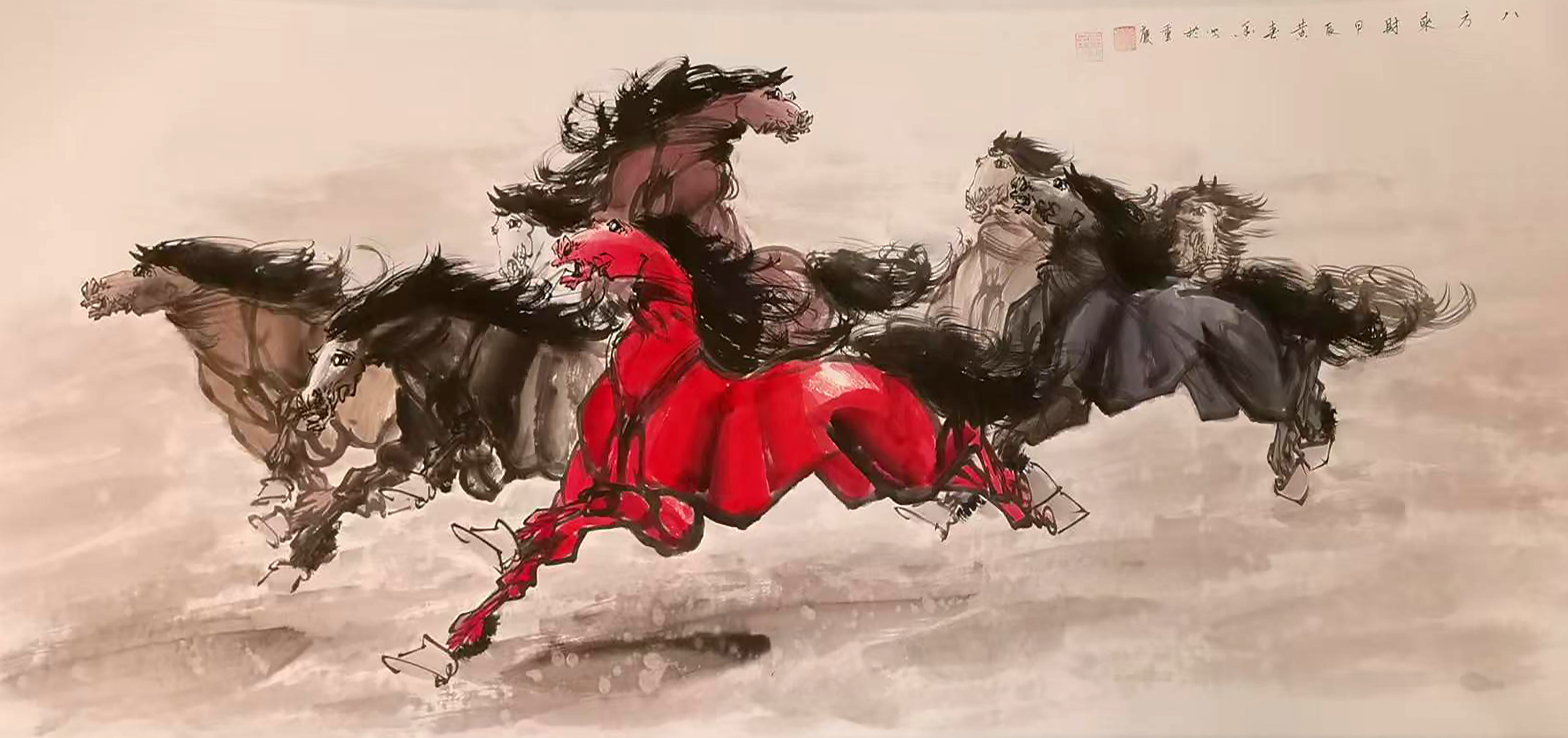 作品:八方来财八骏图