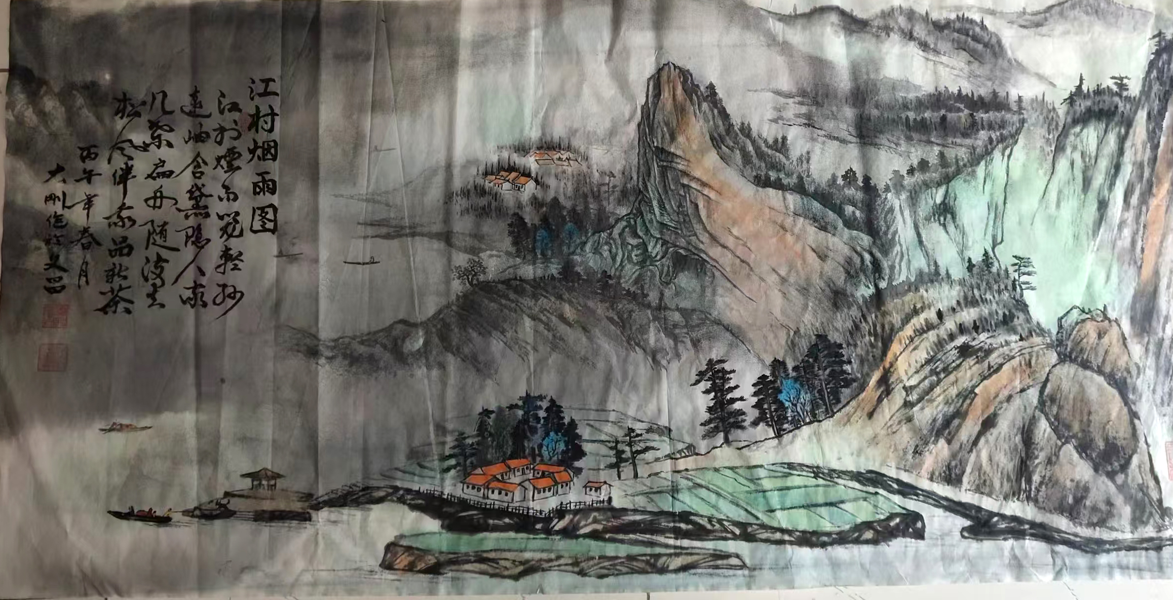 江村烟雨图AB0315